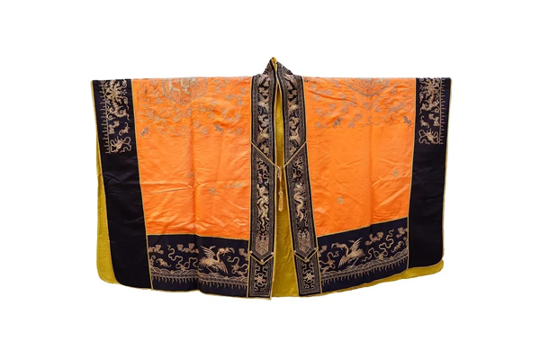 ?橙色缎盘金绣团龙丹凤萧台纹法衣