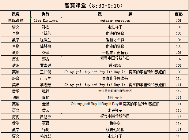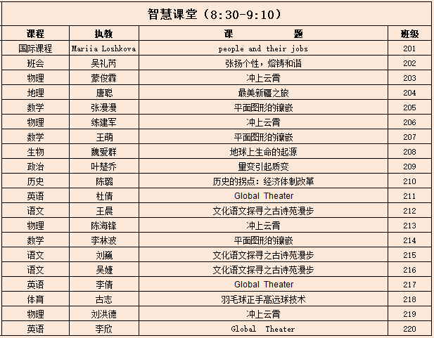 活动安排:8:30-9:10 智慧课堂;9:30-11:30 幸福课程、特色活动。
