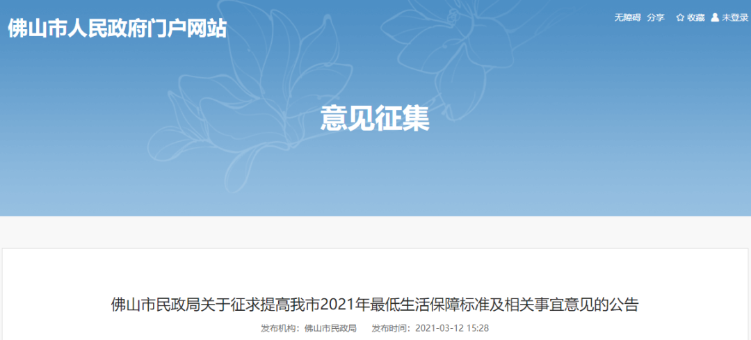 佛山市民政局关于征求提高我市2021年最低生活保障标准及相关事宜意见的公告