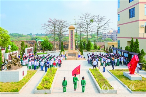 昨日,佛山市萌茵实验学校的少先队员在三水人民抗日纪念碑前缅怀革命先烈。
