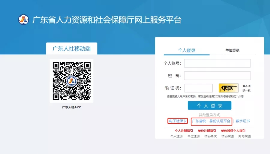 第二步:选择通过“电子社保卡”或“广东省统一身份认证平台”登录;