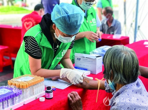健康义诊活动中,高明区家庭医生党员志愿服务队在更合镇小洞村为当地老人开展健康体检和健康咨询活动。(资料图片)/佛山日报记者陈嘉懿摄