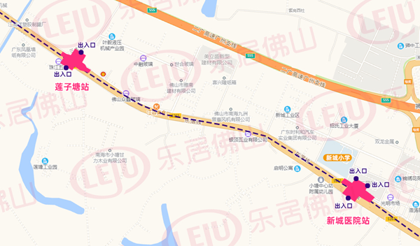 进入狮山后,线路于广云路铺设有莲子塘站、新城医院站, 前者规划2个出入口,后者规划3个出入口。