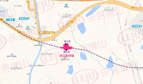 线路折向狮山片区规划路,在大江社村设置大江社村站,规划2个出入口。
