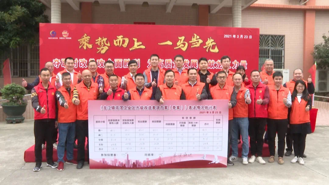 3月25日,记者从龙江镇村改办获悉,龙江社区高滘工业区村改方案以“百分百参与率、百分百同意率”顺利通过村集体表决,再次展现龙江村改总攻的“速度与激情”。