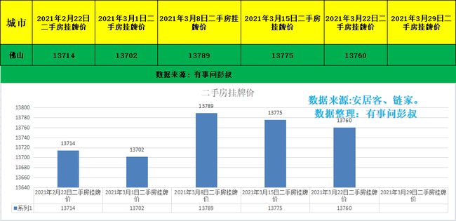 一、佛山楼市二手房挂牌价从13775元变为13760元,本周下跌15元,开始下跌。