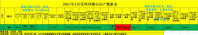 佛山楼市2021年3月第四周数据出炉,其中: