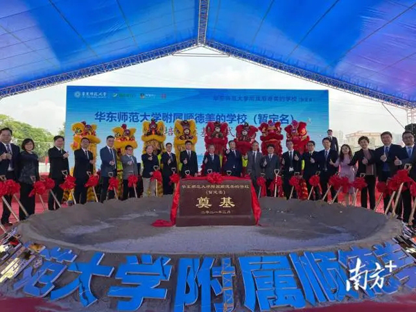 顺德再添一所高水平九年一贯制学校。3月28日,华东师范大学附属顺德美的学校(暂定名,下称“华东师大顺德美的学校”)在顺德区北滘镇环镇西路与南源西路交处地块动工,预计提供小学、初中共超5000个学位,总投资约8.34亿元。