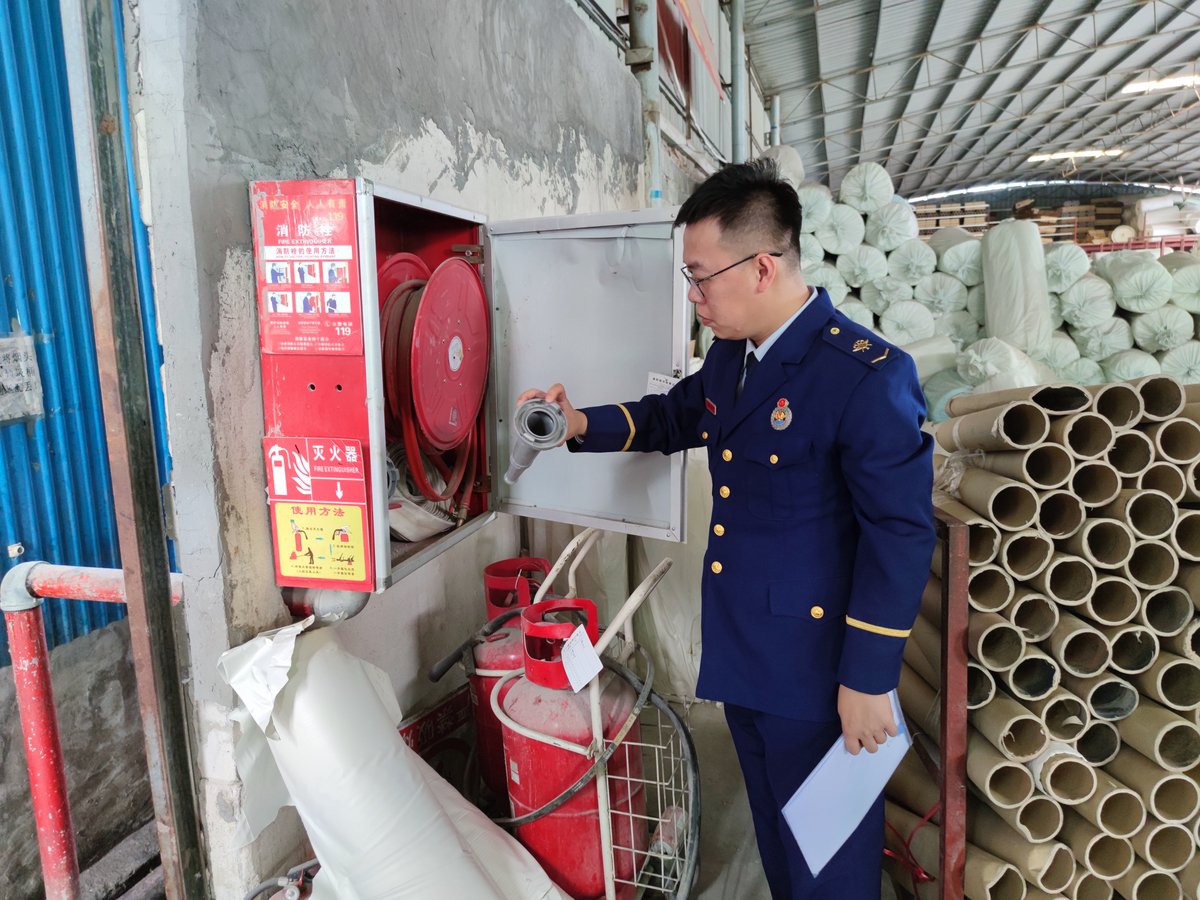 云东海街道联合执法检查人员对村级工业园内经营企业开展检查。/云东海街道供图