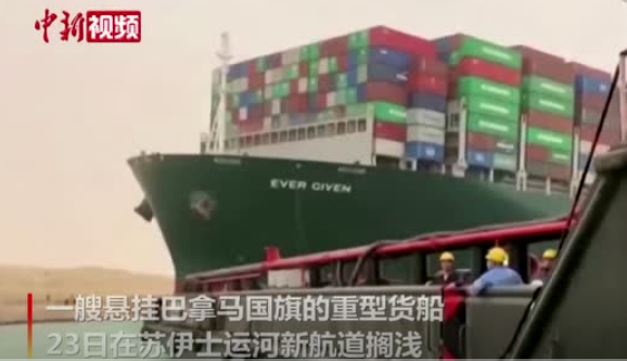 综合报道,一艘长约400米、悬挂巴拿马国旗的重型集装箱货轮当地时间23日起堵在苏伊士运河航道,今天已是第7天。目前,货船脱困工作取得了一点进展,正持续进行救援,但运河被堵多日,已造成附近300多艘船排队等待,也给全球供应链等带来影响,叙利亚因石油供应受阻开始实施燃料配给,美军方称其军舰活动也受到影响。
