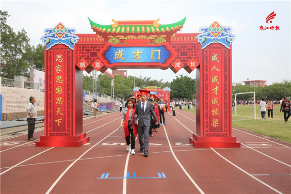 南海九江中学成人礼最后一个环节,是由高三学子携手父母一起踏过年轮道,跨越成人门、成器门、成才门。寓意高三学子跨过这三扇门,迎来了人生又一段旅程,迈入广阔社会、完成角色转变、担起肩上责任,宣告长大成人,要更成熟,更坚定。