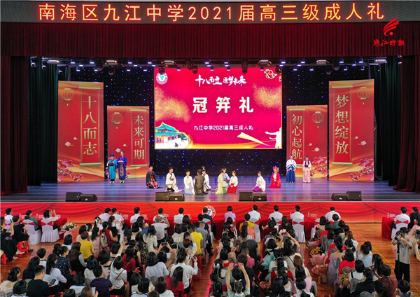 我国自古就有成人礼仪,男孩子的叫做“冠礼”,女孩子的叫做“笄礼”,冠笄之礼是中华民族重要的文化遗产,去年,由于疫情原因,南海九江中学高三学子遗憾错过了成人礼。今年南海九江中学高三学子的成人礼参照古时礼节流程、在父母和老师的见证下庄重进行,彰显着少年郎将由家庭中毫无责任的孺子转变为跨入社会的成年人,践行孝悌忠信的德行,承担起对个体人生、家庭社会乃至对国家的责任和义务。