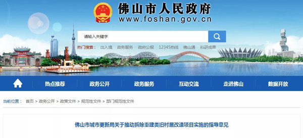 《佛山市城市更新局关于推动拆除重建类旧村居改造项目实施的指导意见》(以下简称“《意见》”)近日出台,4月1日起实施,有效期3年。