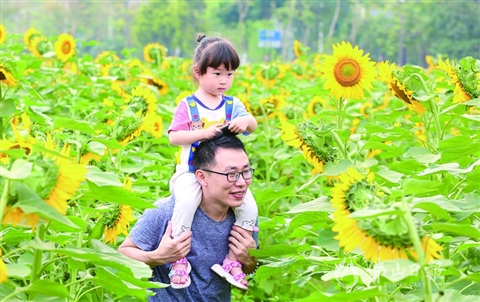 桂城千灯湖地铁站附近向日葵盛开,市民在游玩拍照。 /佛山日报摄影俱乐部成欲晓摄