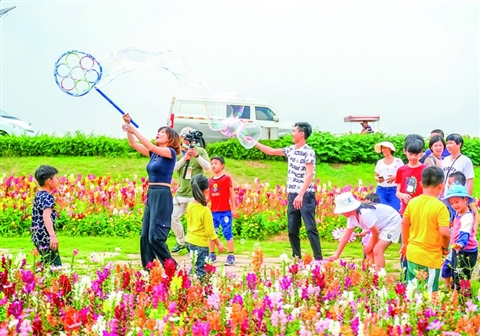在高明盈香生态园,“九寨水城、机动游戏任玩、鸟巢科普园、森林剧场、反斗水城、四季花海”等六大主题区全部开放,累计吸引广州、佛山、江门、肇庆等珠三角各地游客约3万人次。景区积极倡导游客文明观景踏青,游客也努力用文明守护春色。