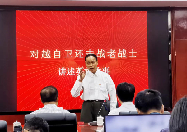 3月29日,执行局党支部邀请老战士潘灼贤,为党员干部上了一节党史课。潘灼贤以自身经历及留存物品出发,从“视”与“听”两个角度,向党员干部展示了当年战场上的腥风血雨,并鼓励党员干部分享自己的学习感受,全面、立体地推动党史学习教育深入人心。