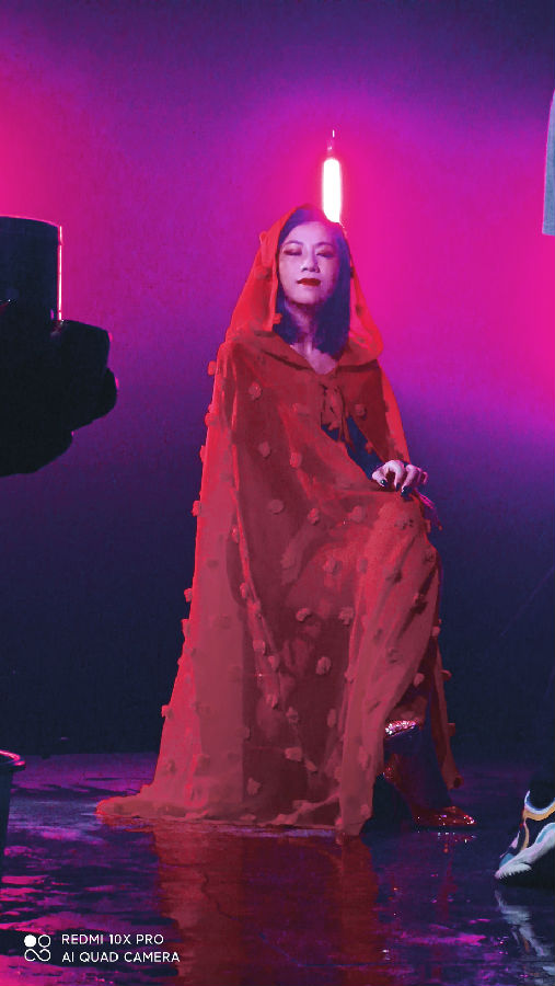 彦倾向有小梅艳芳之称,当日她服饰造型多变,从拉着行李箱离家时天真无邪,穿着小白鞋的小女生,到中年时期的穿着飘逸、成熟贵气、女人味十足,再到室内场景时的妩媚妖艳!让人迫切想要看到MV成品里的小梅艳芳!