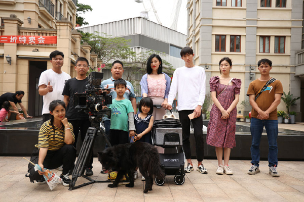 拍摄进行到中午时分,转场到风景秀丽,视野开阔,建筑繁华的清远美林湖,完全脱离了农村的调性,来到了热闹的都市,彦倾富态且悠闲的推着朵朵宠物用品公司生产的宠物手推车,里面是一直陪伴自己的小狗,当爱情不确定时,唯一它是自己最忠诚的情感寄托!