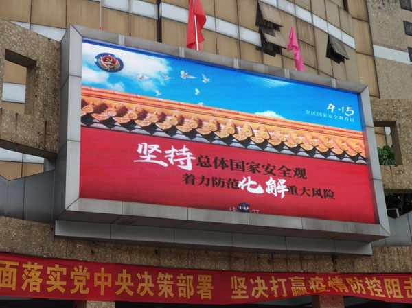 在高明区纪念中学,通过LED屏幕向学生展示国家安全教育日相关内容。区教育局供图