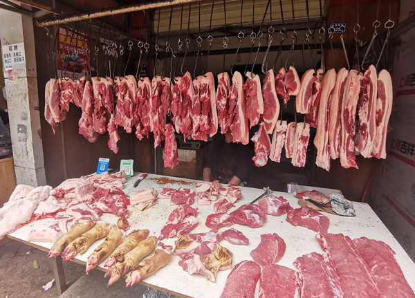 “辽宁沈阳,超市里最便宜的猪肉已经12.9元一斤了,排骨16.9元。”