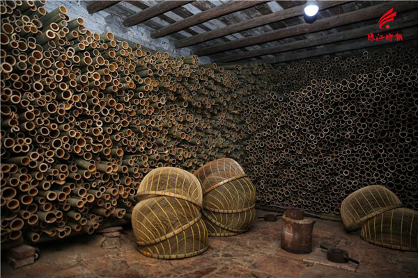 存放在仓库的竹子和鱼筛。