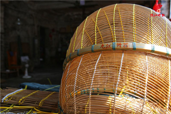 在九江上西村一眼池塘边,有一间并不起眼的小砖屋。在这里,张华成经营着一个专门制作九江传统竹制鱼筛的小工场。