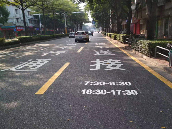 在早上送学时段内,校园门口将设置“警家校”义工接送区,送学车辆依次排队驶入送学车道内,由家长义工接学生下车后进入校园,实现送学车辆“即停即走”,提高道路通行效率。下午放学阶段,允许家长车辆在现场交通指挥人员的引导下,在接送车道内短暂停放,满足家长停车接送需求,避免接送车辆乱停放引起道路拥堵。