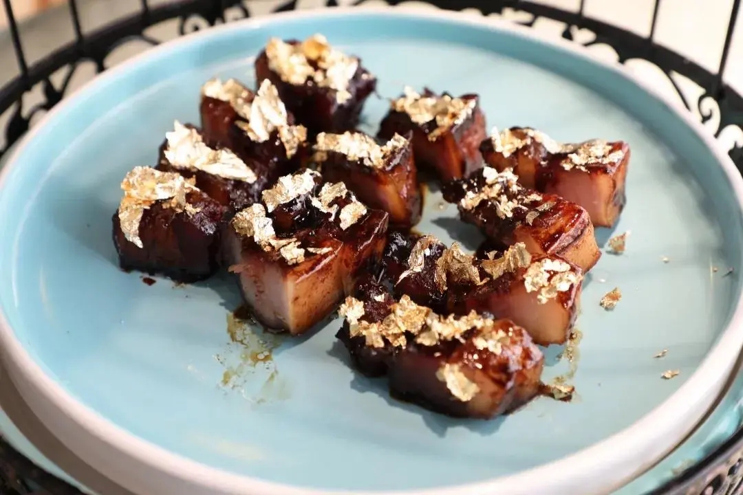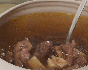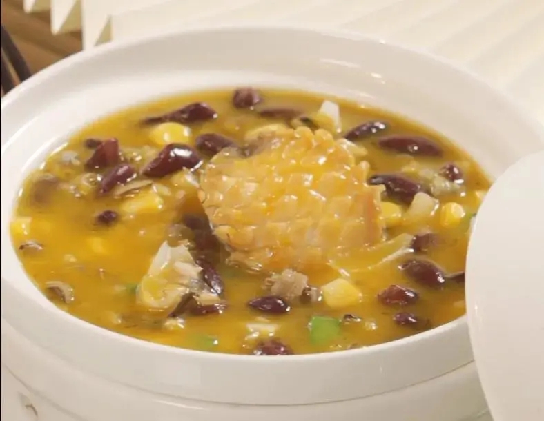 粗粮与鲍汁炖煮成金黄色的汤汁