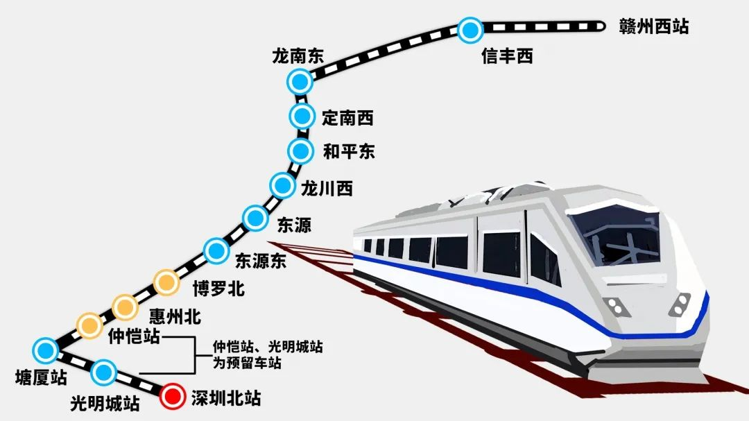 伴随着赣深高铁第一次发车,在惠州北站,将实现两站到东莞,三站到深圳,乘坐高铁18分钟可到达深圳。