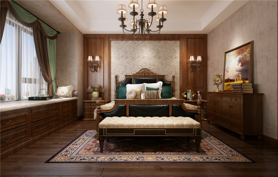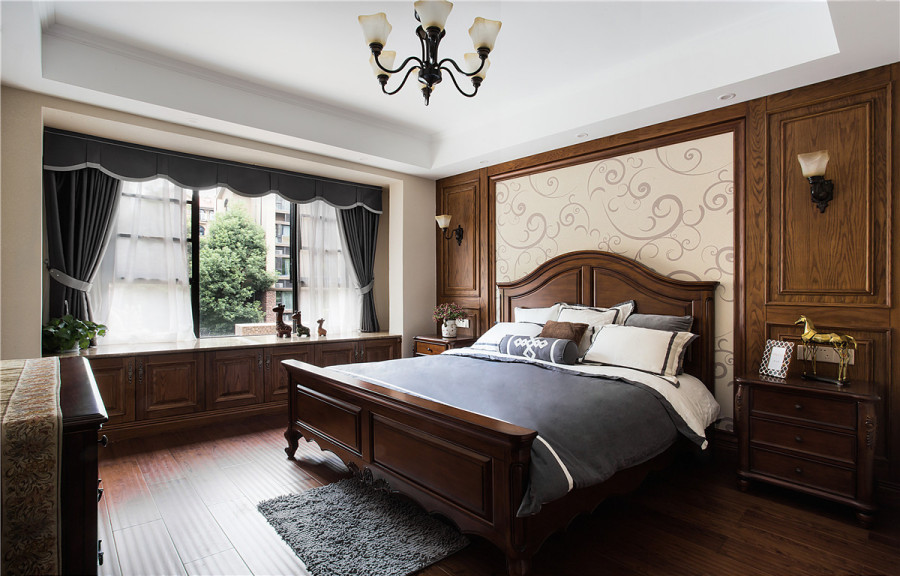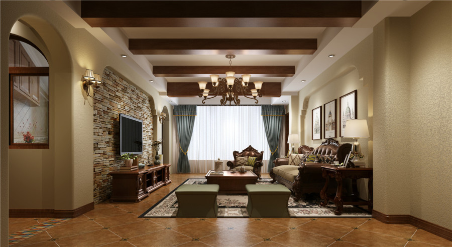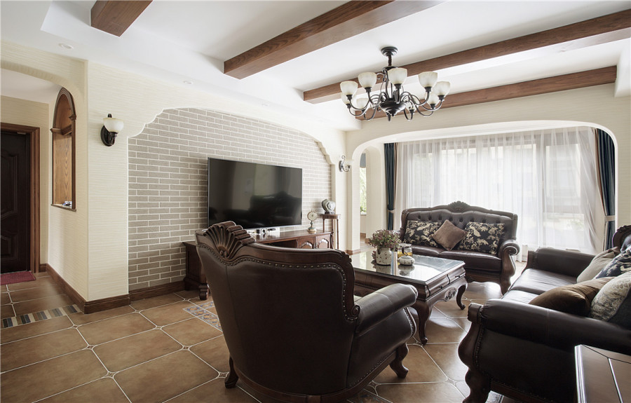 美式乡村风格,倡导“回归自然”。所以在装修上选择了硅藻泥来打造泥土的痕迹,拱形的墙面搭配布艺的天然感与,营造出田园的舒适和宁静。同时选用的美式家具体积庞大厚重,非常的自然且舒适,充分显现出乡村的朴实风味。在摆件上选择了小碎花布抱枕、野花盆栽、水果、铁艺制品等来打造一个回归自然的空间。