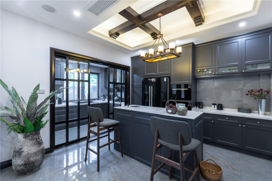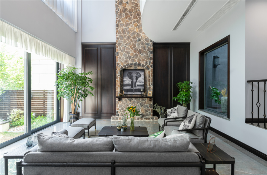 设计的考虑上颜色比较深沉整体风格偏向美式 局部地下室把下沉式花园作为整个房子的突出所,运用了一些美式乡村 的手法 给空间应有的明亮感。