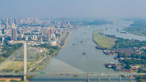 俯瞰西南街道东平水道河堤。/佛山日报记者王澍摄
