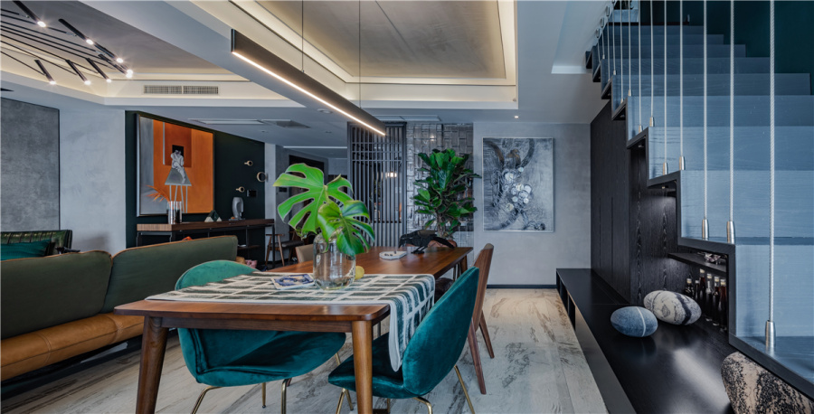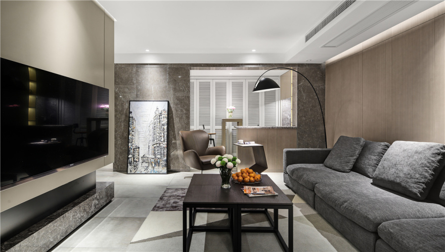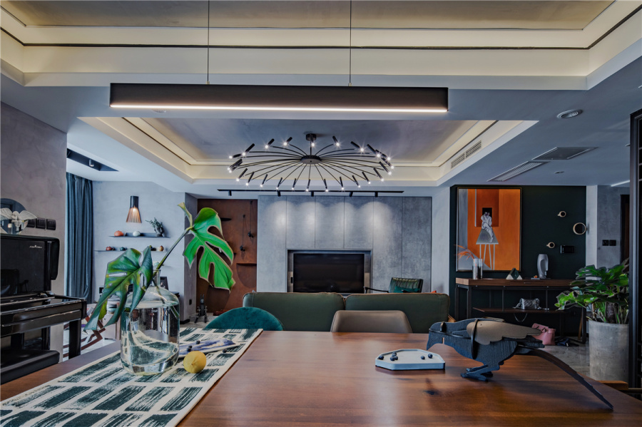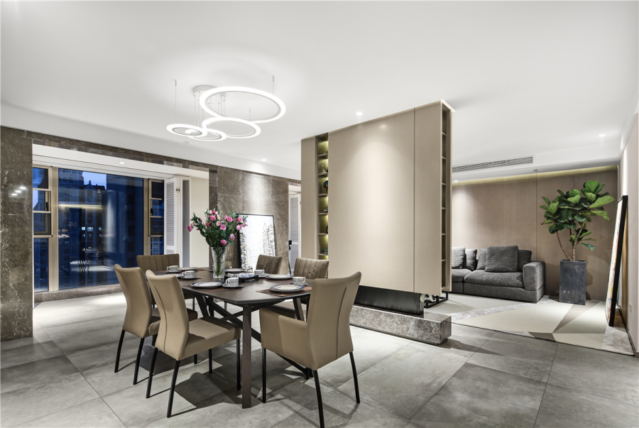 客厅、餐厅是重点打造的区域,以电视背景墙为中心轴,可分可合,让一家人的交流和视觉都更加集中。