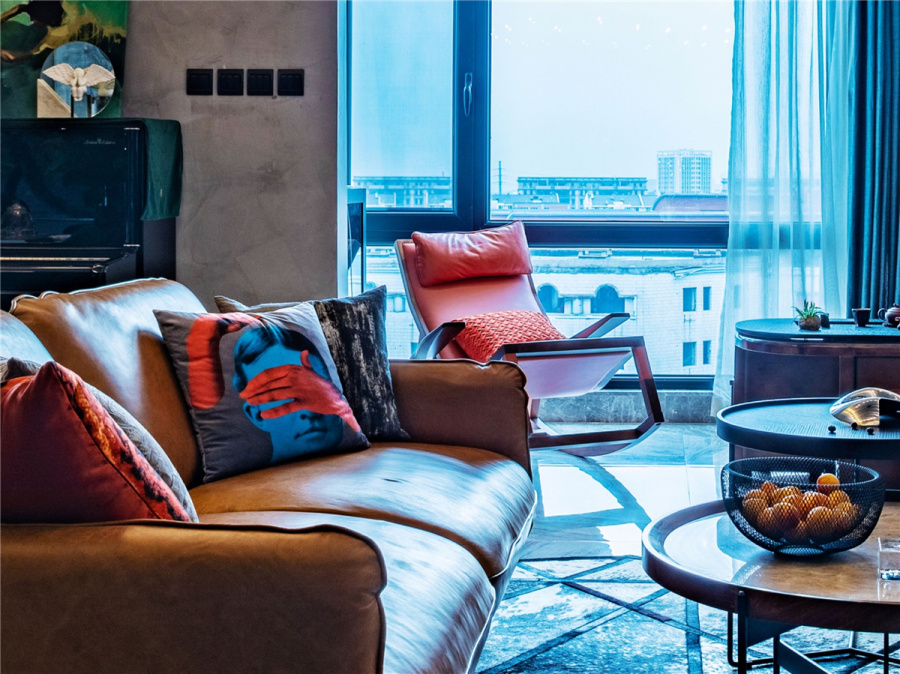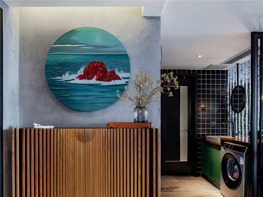 为了消除空间层层阻隔,重新做了空间划分,客、餐厅走廊最大化的让人的视线得到延伸,让整个空间更加自由,地面的水泥色瓷砖和灰色的墙面、白色的顶面莫名带着一股酷劲。