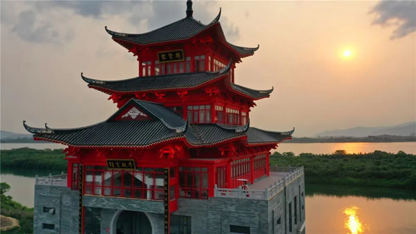聚贤楼位于三水区白坭镇沙围村村前大道向北的西江边上,外观以红色、复古为主基调,十分庄重典雅。佛山日报记者王澍摄
