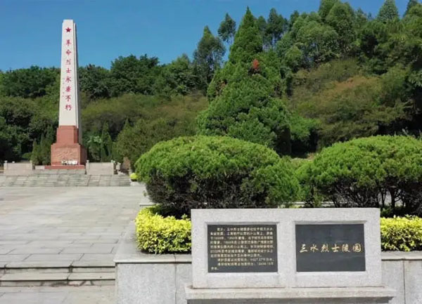 位于佛山市三水区云东海街道三水森林公园博物馆旁。始建于1958年,1964年重修,原址位于三水旧西南公园,2003年4月,迁至现址,现占地面积4427.27平方米。陵园西北部立有一块革命烈士纪念碑。纪念碑为大理石基座,外砌瓷砖,红砂岩人物浮雕,花岗岩碑身。该碑为纪念解放西南镇而牺牲的烈士而立,碑正面刻有广东省原省长刘田夫题写的“革命烈士永垂不朽”八个大字。三水烈士陵园是三水解放的重要纪念地,为市级爱国主义教育基地、市级文物保护单位、区级国防教育基地。