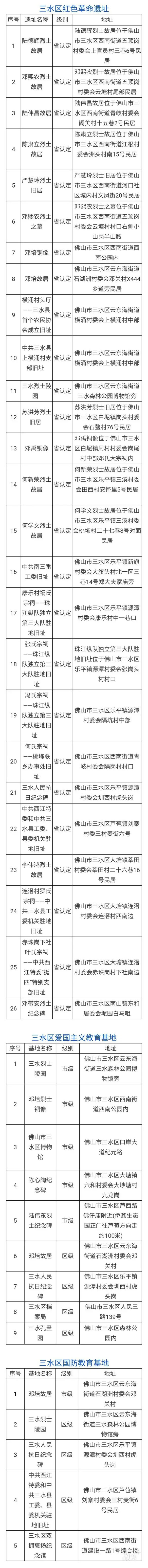 经审核认定,近日三水区委党史学习教育领导小组办公室公布了辖区26处省级认定红色革命遗址、9处爱国主义教育基地、5处国防教育基地名单。接下来,将进一步把红色资源转化为党史学习教育资源,深入推进党史学习教育。