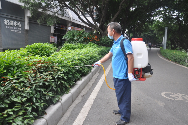工作人员对绿化带进行喷洒消杀。/通讯员供图