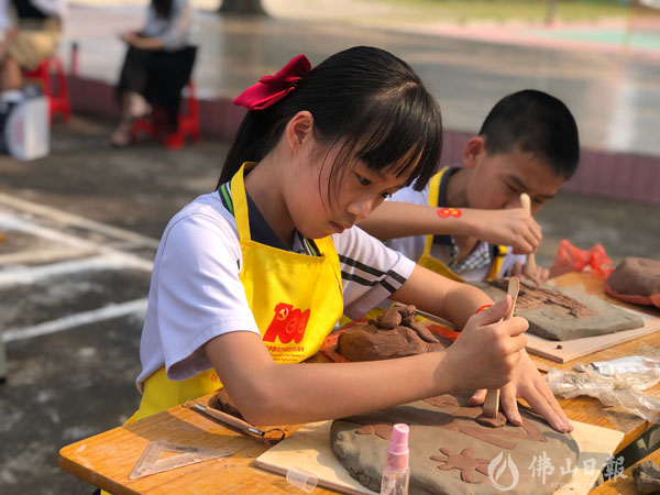4月22日下午,高明区泽英小学的学生们正在认真制作陶艺作品。
