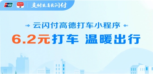 银联云闪付联合“高德打车小程序”推出6.2元温暖出行活动。截止到6月30日,在云闪付app内搜索“高德打车”,首单“消费20元以内”车程可享受仅付6.2元,非首单“打车消费”享1-6.2元随机立减,为消费者出行提供便利。
