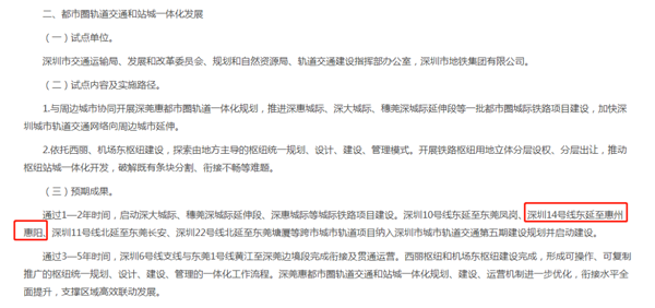 延伸至东莞的深圳10号线、深圳11号线、深圳22号线以及延伸至惠州的深圳14号线,纳入深圳市城市轨道交通第五期建设规划并启动建设。