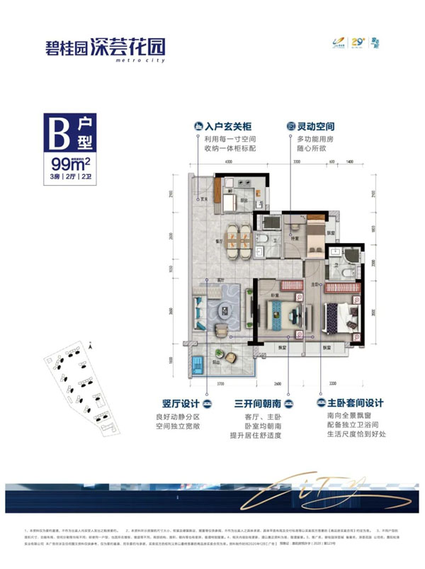 经过严格的日照分析和测算,项目合理规划了每一栋高层楼栋的位置,并且做到户户朝南,每一户的客厅和主卧室皆为南向,充分保证每一户业主享受阳光的权利。