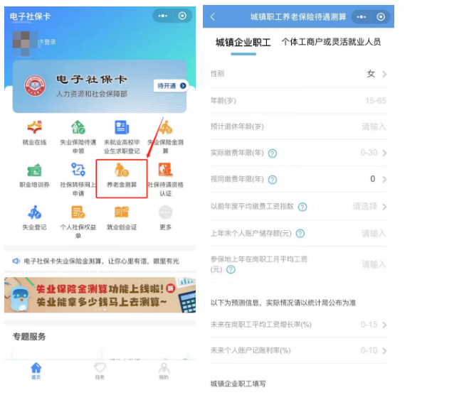 同时,电子社保卡也可以测算退休后的养老金呦!微信搜索“电子社保卡”小程序,点击首页 “养老金测算”,输入相应参数即可测算。