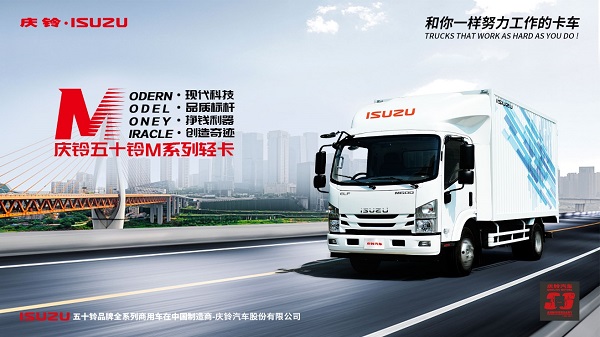 庆铃五十铃M系列轻卡于2020年正式上市,一年来深受老物流人和年轻用户的青睐。作为五十铃全球最新一代力作,M系列轻卡传递出用户为核心的研发理念和深层含义。M代表了轻卡现代科技(Modern)的集成,智能油耗系统、智能网联系统、全液晶仪表、行车电脑、智能人机界面等实时动态管理着卡车的运输状况;M也代表着国内高端轻卡的品质标杆(Model),高技术、高强度材料、高精密工艺打造,以及30万公里验证与60万公里无大修保障;对于用户而言,M更是代表着挣钱利器(Money)。五十铃黄金动力链,98%以上传动效率,百公里综合工况油耗降低0.5L,TCO运营总成本最低,一切都旨在保障用户利益;M更代表了创造奇迹(Miracle),高承载底盘、高附加值专用车改装,为不同领域用户带来属于自己的物流“奇迹”。
