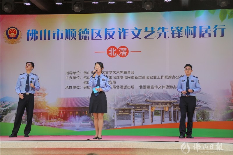 当日,佛山市顺德区反诈文艺先锋村居行活动走进北滘君兰社区,在北滘镇和园景区内举行系列“文艺+反诈”活动。顺德区公安局同时聘任佛山电台音乐制作人杜文阳、北滘镇君兰社区党群艺术团团长高银明、碧桂园集团办公室行政管理部总监钟永杰为“防范电信网络诈骗宣传形象大使”。