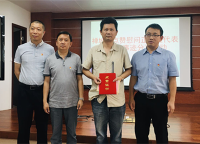 随后,禅城区文明办、区卫生健康局、区人民医院有关负责人为关建平颁发点赞证书,证书由其儿子成小军代领。
