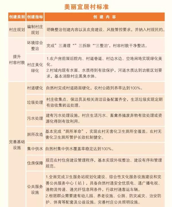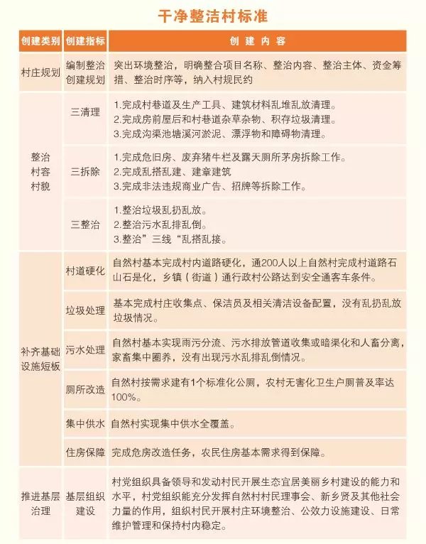 2020年年底前,全部行政村达到干净整洁村标准,60%以上达到美丽宜居村标准。