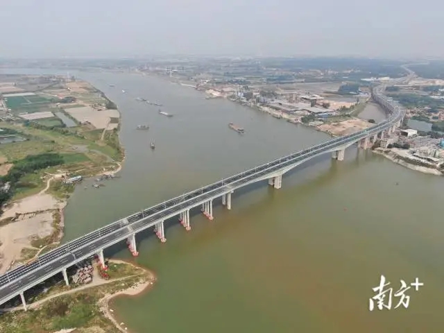 图片三水坚持交通先行深度参与粤港澳大湾区建设。图为今年4月开通的广佛肇高速北江特大桥。通讯员供图