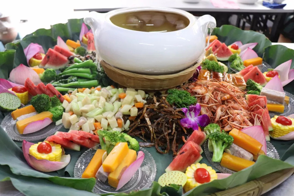 2018年6月,CCTV7《美丽中国乡村行——探寻长寿之乡奥秘》栏目来三水拍摄,芦苞温泉还原了长寿家宴簸箕宴。(资料图)