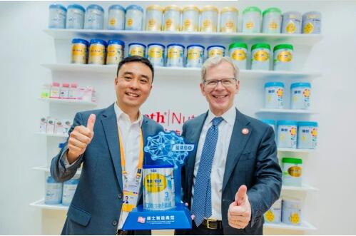 (瑞士驻华大使Bernardino Regazzoni 罗志谊(右)点赞惠氏铂臻)